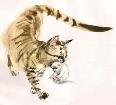 「ねこねここねこ」には筆のタッチと勢いがそのまま残った、