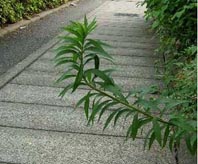 写真中、一度倒された雑草が再度上に向かっている。エライッ!