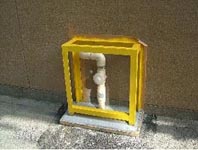 写真下、道路に面して露出している配管を車から守っている鉄のフレーム。