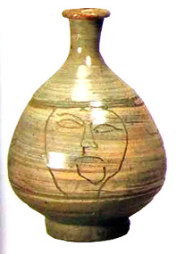粉青沙器彫花顔文瓶