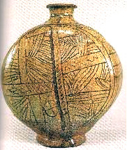 している。粉青沙器彫花線條文扁瓶