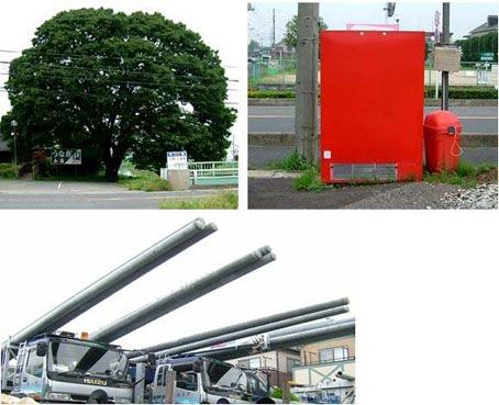 下・テポドンに対抗して配置されたバズーカ砲…ではなくて近所にあるコンクリート製電柱置き場。