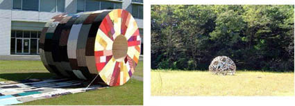 クボユーシロのページ 2006年10月9日 埼玉県の西部地区に広がる比企丘陵。その中にある鳩山町の東京電機大学キャン パスで毎年秋に行なわれている野外アート展に今年も行ってきた。折りたたみ自 転車を抱えて東武東上線の高坂駅で降りた。暑からず寒からずの丘陵地帯、秋晴 れの中キャンパスまでは約20分の快適なサイクリングだった。今回は約40名の 内外のアーチストが出品していた。 広大な自然環境の中にある東京電機大学の キャンパス。 森の中や校庭の中に40以上の大きな作品が ゆったりと置かれている。 戻る