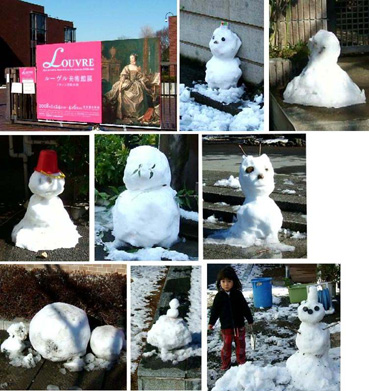 昨日の雪であちこちに雪だるまがあった。