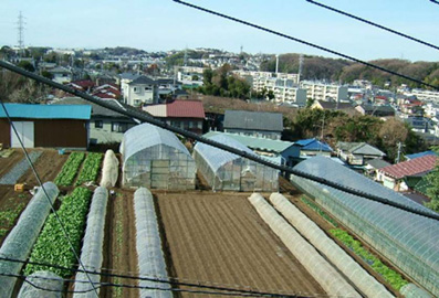 窓から畑が見える。