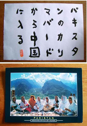 クボユーシロのページ 2008年6月2日(月)書道おもしろそうシリーズ−4 カゼが治った。ここ1週間ほど居座っていたやつが朝起きたら『あれっ?』 という感じで去っていた。 仕事を辞め、夫婦でアジアを放浪している甥っ子から絵葉書が来た。パキ スタンのカリマバードという所から山を越え中国に入るらしい。 詳しくは彼らが旅先から発信しているブログ(ちょっとそこまで世界一周) を見てやって。 戻る