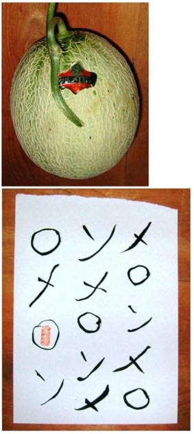 クボユーシロのページ 2008年7月22日(火)書道はなかなか面白いシリーズ―11 10時頃、札幌の兄からメロン7個来る。5個をご近所に。説明書『夕張メロンをおいし く食べるには』に『写真の色になるまで置いてください』と。しかし、来たメロンが 写真の色か微妙。1個を冷蔵庫に、もう1個はそのままにする。しかし夜不安になり切 ると熟れすぎ。冷蔵庫のはセーフ。説明書通り種を取りラップで包み冷蔵庫に。説明 書渡したが、ご近所は大丈夫か。 香りは今一だったが、みずみずしくさっぱりした甘味。 戻る