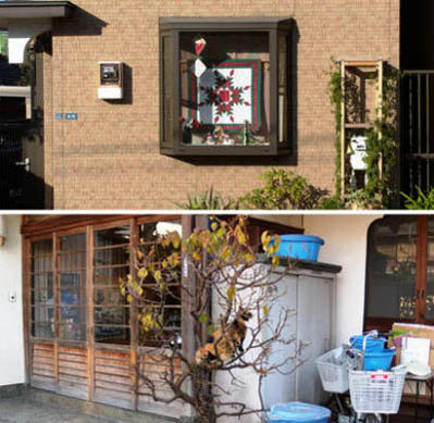谷中の三崎坂沿い、一般住宅の出窓がクリスマスムードに。