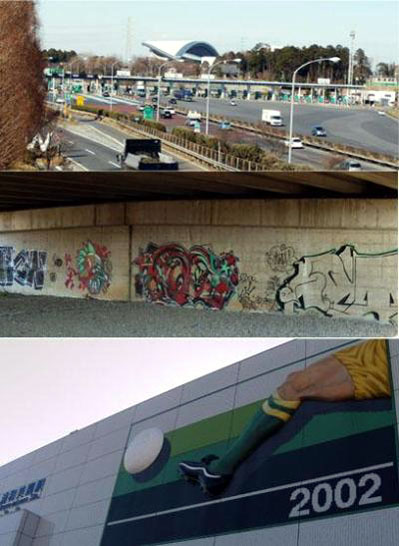 高速道路を跨ぐ陸橋の下は現代アートギャラリー。