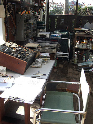 ■ 土間の机の隅に鎮座するテープデッキ。無事録音出来て