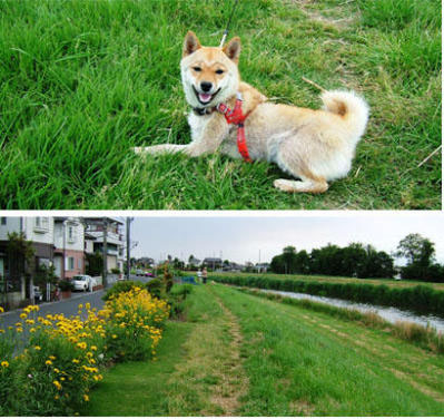 芝犬まめちゃんはまだ子供、先日近所の綾瀬川の土手を散歩途中にパチッ。