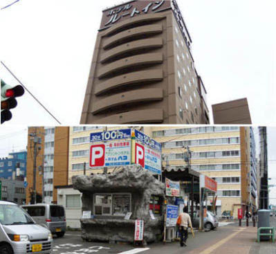 ホテルのそばの有料駐車場、入り口の建物がおかしい。オーナーの趣味なのか、話題