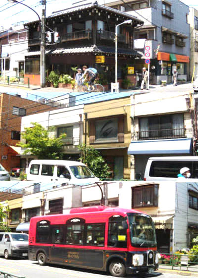 谷中の細い道にあわせて区営の小型バス「めぐりん」が活躍。
