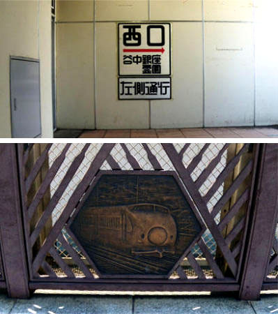 西口と東口をつなぐ陸橋の側面にはよく見ないと判りにくいが鉄道マニアに
