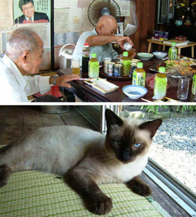 人が飼い猫を猫好きの叔父さんに託していく。家の内外に10匹ぐらいいてキャット