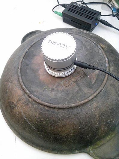 試してみた。ふと思いついた重量たっぷりの金属鍋の背中に押し当て