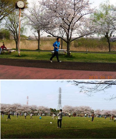 周囲に散歩道はたくさんあるが、皆がやってると一人で歩くより気分が良い。