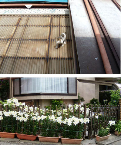 野良が一匹だけ生んだ子猫(生後3ヶ月ぐらいか雌雄は不明)、北隣のSさん宅のベラン
