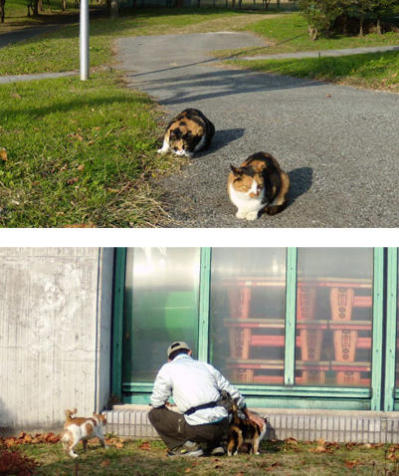 広大な健康福祉村の中には、野良猫がたくさん住み着いている。猫好きの人がごはんをや