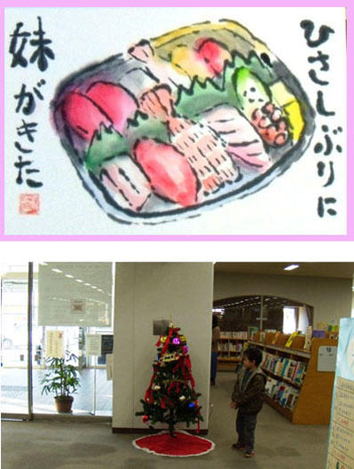 図書館は殺風景だったが、最近は季節ごとにデコレーションが変わる、今は随所にク