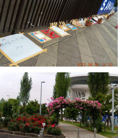 選手たちが汗まみれで戦う埼玉スタジアムだが、周辺にはバラの花のアーチや大きな花
