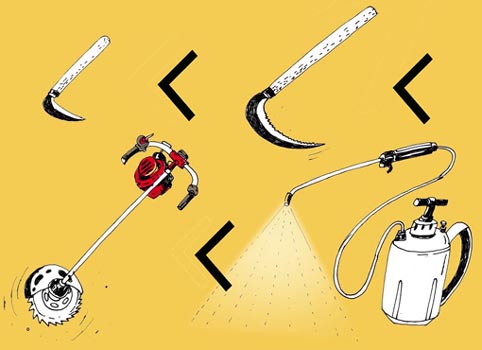 比べ、一気に刈り払うエンジン機や噴霧ってのは、ある意味誠意がないんじゃないかとも