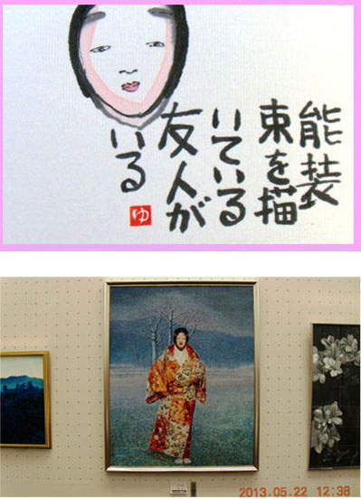 クボユーシロのページ 2013年5月27日(月) 連載・絵手紙にチャレンジ(37) 先週、上野の東京都美術館に行った。学生時代の友人から毎年来る団体展の案内状を持 って、彼の作品を見に行った。彼はメーカー系列の広告代理店をリタイヤした後、歴史 はあるらしいが有名でない美術団体に入り、毎年油絵を出品している。 毎回彼の絵は、緻密な能装束とバックに風景を配した作品である。毎回好評で、今回も 入選していた。まぁ、個人的には今回の展示作品の中で一番上手いと思った。友人だか らという贔屓目ではない。 戻る