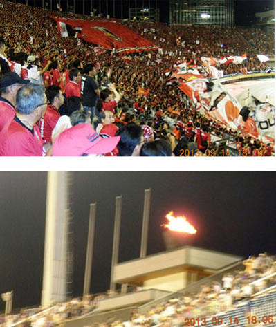 東京のホーム試合、さすがガス屋が親会社だけに聖火台のガスの炎に勢いがあった。