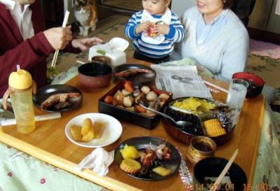 目だが写真通りで姪っ子の小さい頃に似ている。妹は手作りのおせち料理を出してくれた、