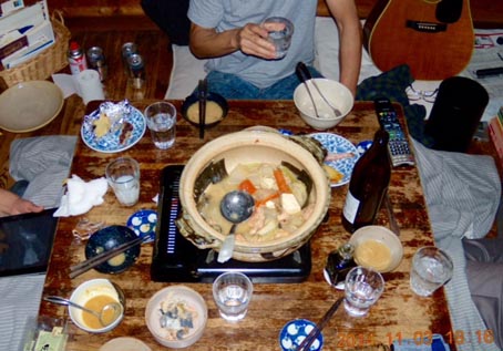 ファミレスの後、兄と2人で田島氏のところへ行き鍋をご馳走になった。兄と田島氏は酒を