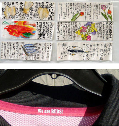 20×50cmぐらいの和紙にエイのヒレを描いた。スーパーで買って、袋から出したやつ