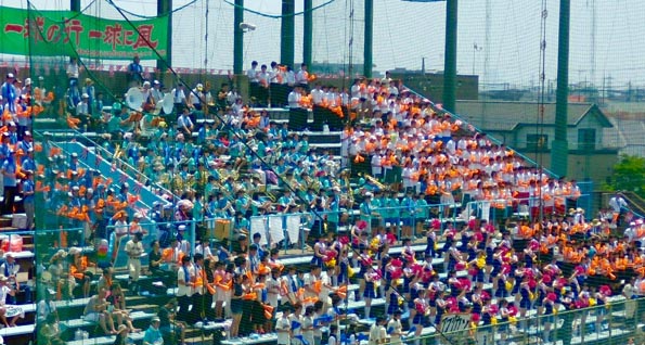 日曜日で天気も良かったせいか内野席はほぼ満席、熱心な高校野球ファンや父母会やOB